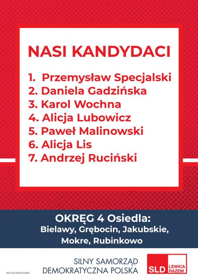 Kandydaci i Kandydatki KKW SLD Lewica Razem do Rady Miasta Torunia